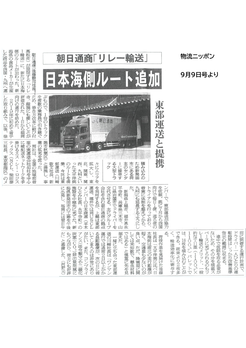 【日本海側ルート追加!】新輸送サービスが「物流ニッポン」に掲載されました]]>